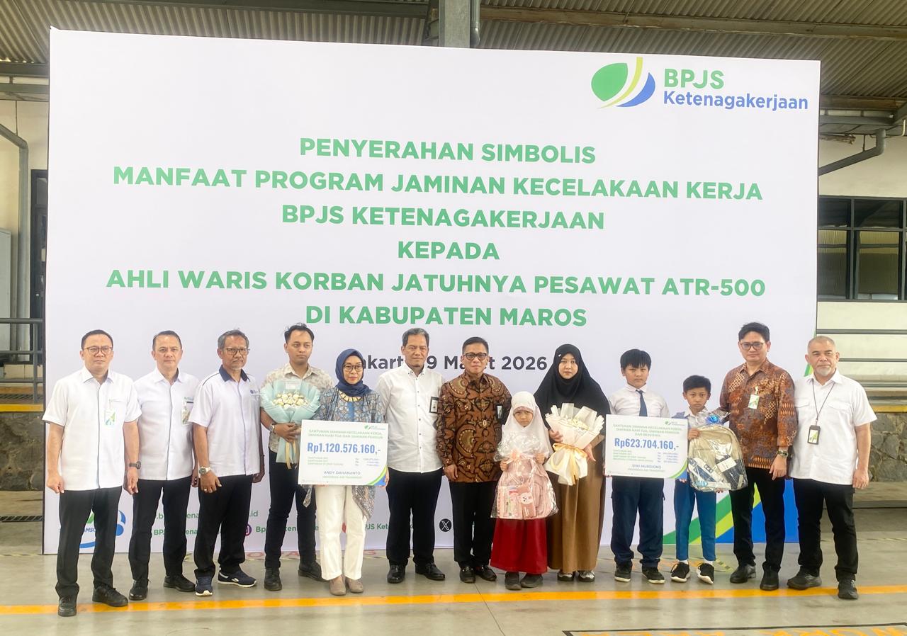 Jakarta, Pelitabaru.com – BPJS Ketenagakerjaan menyerahkan santunan secara simbolis sebesar Rp1,7 miliar kepada ahli waris korban kecelakaan pesawat ATR 42-500 milik Indonesia Air Transport (IAT) yang jatuh di kawasan Pegunungan Bulusaraung, Kabupaten Maros, Sulawesi Selatan beberapa waktu lalu.