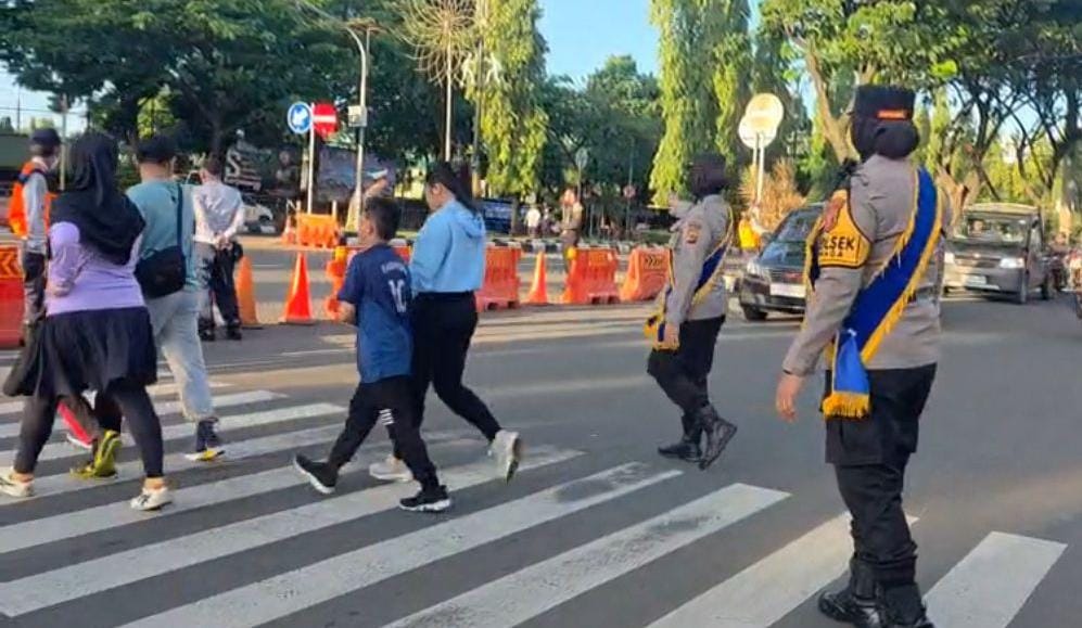 “Kami juga memfasilitasi keamanan, kenyamanan dan kelancaran tertib arus lalu lintas di jalur lambat bagi kendaraan yang melaju baik roda dua dan roda empat dan juga di jalur cepet bagi pejalan kaki yang berolah raga,” pungkas Iptu Desi